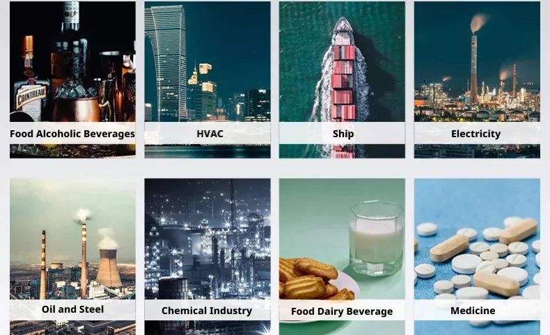Scheepsindustrie: voornamelijk gebruikt voor koeling, waterkoeling van de mantel, smeeroliekoeling, koeling van zuigerkoelvloeistof, koeling van transmissieolie, voorverwarming van zware stookolie, voorverwarming van diesel, andere proceskoeling, enz.